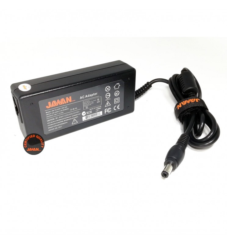 Cargador para Portátil TOSHIBA 19V 3.42A. Los cargadores JAWAN están diseñados para brindar una segura fuente de poder a los portátiles, protegiéndolos contra cambios de corriente y así prolongar su utilidad. Se garantiza la compatibilidad con el portátil. Entrada de: 100 V-240V 50-60Hz 1,2A. Salida de: 19V 3.41A Con recubrimiento en Rubber Coating para mayor protección. Nuestros cargadores tienen las especificaciones de calidad de fabricantes originales pero con un menor costo. Compatible con varios modelos de Toshiba.